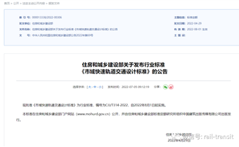 住建部发布《市域快速轨道交通设计标准》 现代城市轨道交通 2022-07-06 17:06 发表于北京