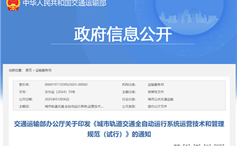 交通运输部办公厅关于印发《城市轨道交通全自动运行系统运营技术和管理规范(试行)》的通知